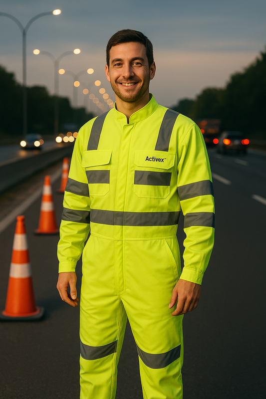Overol relfectante Verde Fluor Cinta 360 Norma Vial
