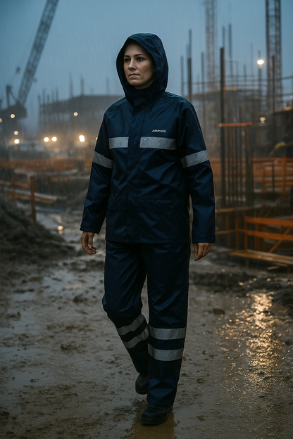 Traje Lluvia Azul con Cinta Reflectante